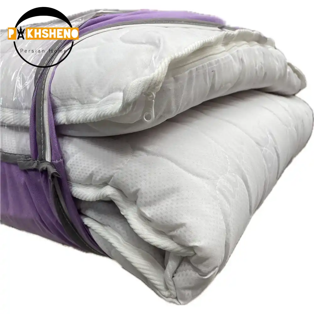 تشک سفری معمولاً از الیاف سبک و مقاوم ساخته میشود و بهراحتی تا یا لوله میشود تا حمل و نگهداری آن آسان باشد. این تشک انتخابی مناسب برای استفاده در مسافرت، چادر، ویلا، خوابگاه یا خانههای کوچک است.
